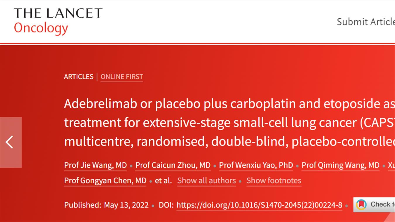 AG视讯卡瑞利珠单抗联合阿帕替尼最新研究成果荣登《柳叶刀·肿瘤》